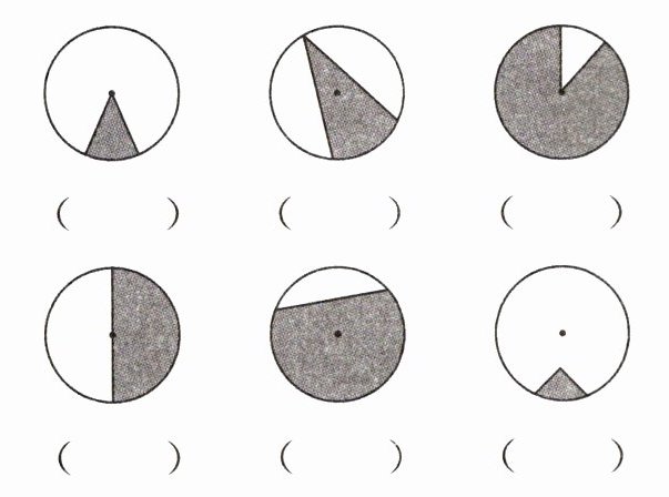 1. 下面哪些图形中的涂色部分是扇形?在( )里画“√”。