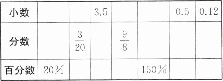 (1)(竖排)0.2 $\frac{1}{5}$ 0.15 15% $\frac{7}{2}$ 350% 1.125 112.5% 1.5 $\frac{3}{2}$ $\frac{1}{2}$ 50% $\frac{3}{25}$ 12%