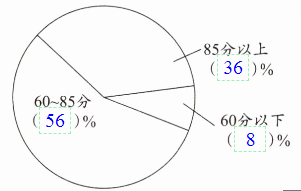 60~85 分的占 56%,85 分以上的占36%,不及格的占 8%。