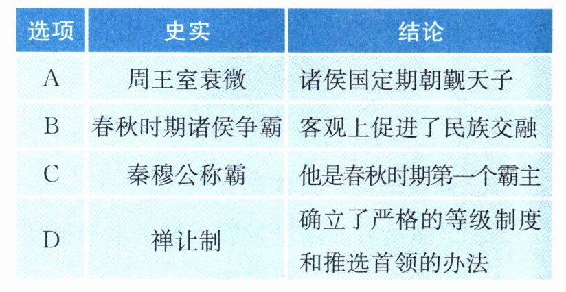 4. 史论结合是历史学习的基本方法。下表中史实与结论对应正确的是(