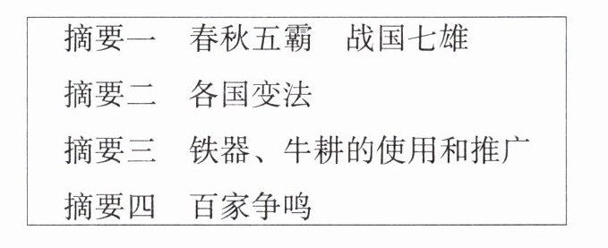 5. 下图是某中学课题组在探究“春秋战国历史”时做的学习摘要。这些信息反映出春秋战国时期的阶段特征是(