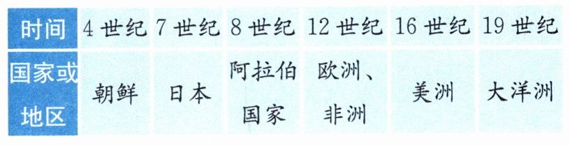 (2)根据材料二,指出4—8世纪我国的造纸术传播到了哪些国家和地区。