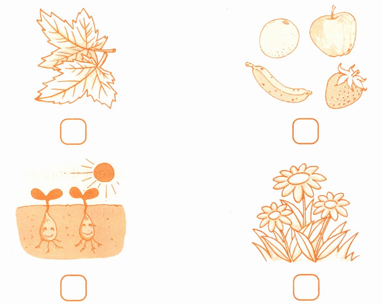 I can see plants in the park./Plants are green and have leaves./My favourite plant is a sunflower.