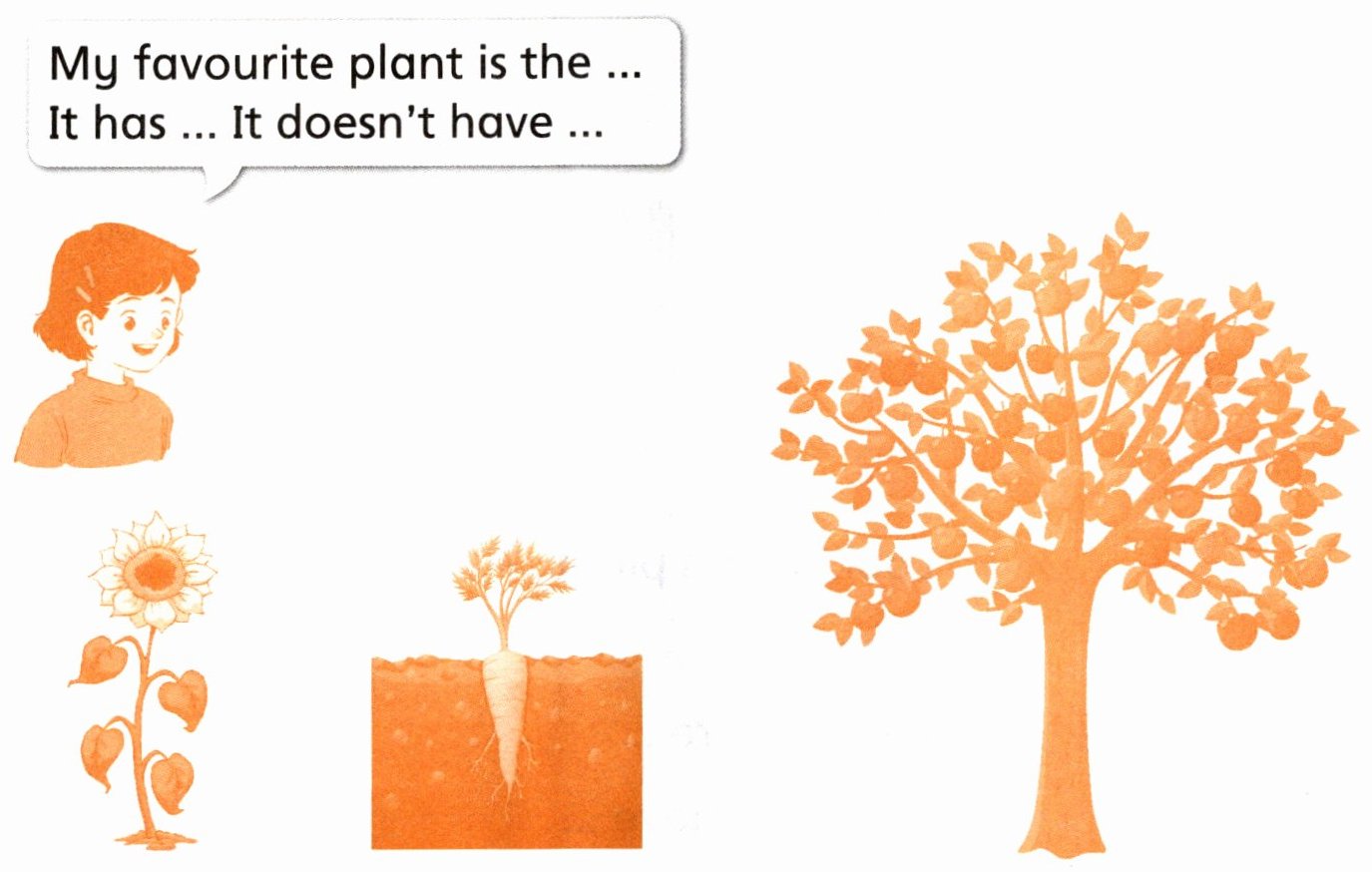 D Think and say (想一想你最喜欢的植物,说一说它的特征)