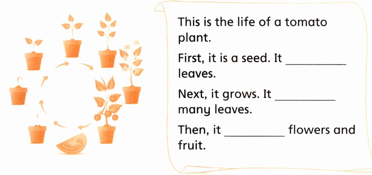 C Look and write (看图,写一写西红柿生长过程中的变化)
