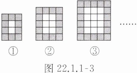 9. 如图 22.1.1-3,用规格相同、颜色不同的正方形瓷砖铺设矩形地面,请观察图形并解答有关问题.