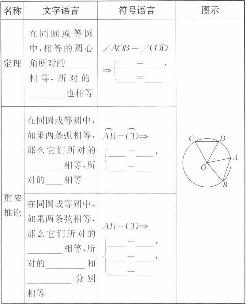 圆心 弧 弦 $\overset{\frown}{AB}$ $\overset{\frown}{CD}$ AB CD 圆心角 弦 $\angle AOB$ $\angle COD$ AB CD 圆心角 优弧 劣弧 $\angle AOB$ $\angle COD$ $\overset{\frown}{AB}$ $\overset{\frown}{CD}$ $\overset{\frown}{ACB}$ $\overset{\frown}{CBD}$