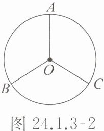 2. 如图24.1.3 - 2,在⊙O中,⌢AB = ⌢AC,∠AOB = 122°,则∠AOC的度数为 (