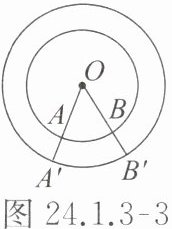 如图24.1.3 - 3,小明说:“因为⌢AB和⌢A′B′所对的圆心角都是∠O,所以⌢AB = ⌢A′B′.”