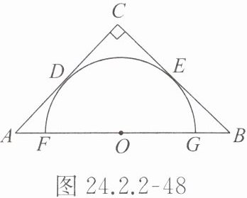 6. 如图24.2.2-48,半圆O与等腰直角三角形两腰CA,CB分别切于D,E两点,直径FG在AB上,若BG= √2-1,则△ABC的周长为