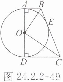 7. 如图24.2.2-49,在四边形ABCD中,AD⊥AB,AD⊥CD,以AD为直径的圆切BC于点E,连接OB,OC,则OB与OC有何位置关系?