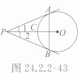 1. 如图24.2.2-43所示,PA切⊙O于点A,PB切⊙O于点B,OP交⊙O于点C,下列结论正确的个数是(