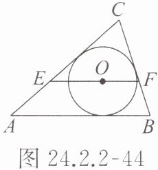 2. 如图24.2.2-44,点O是△ABC的内心,过点O作EF//AB,与AC,BC分别交于点E,F,则(