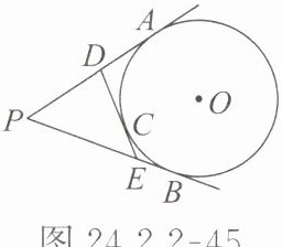 3. 如图24.2.2-45,PA,PB切⊙O于点A,B,过点C的切线交PA,PB于点D,E,PA= 8cm,则△PDE的周长为