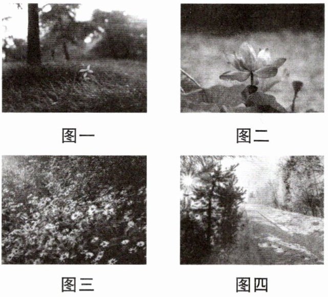 (2)任务二:大自然在每个季节都有它不同的美。请欣赏下面几幅图景,选择你最喜欢的一幅,描绘一下你的感受。80字左右。