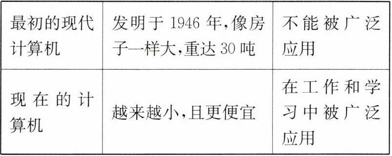计算机在我们的工作、生活中的作用越来越大,你知道现代计算机的起源和发展吗?请根据下面表格中的提示写一篇英语短文,介绍计算机的发展历程。