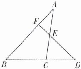 例 1 如图,已知 D 是△ABC 的边 BC 延长线上一点,DF 交 AC 于点 E,∠A = 35°,∠ACD = 83°。