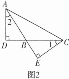 在Rt△ABD中,∠2+∠B=90°;在Rt△CBE中,∠1+∠B=90°.