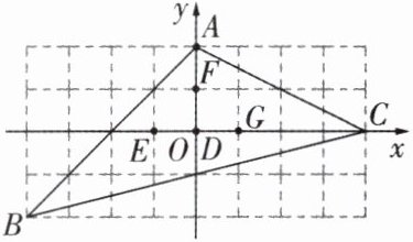 例 1 如图所示的网格由边长相同的小正方形组成,点$A$,$B$,$C$,$D$,$E$,$F$,$G$在小正方形的顶点上,则$\triangle ABC$的重心是(