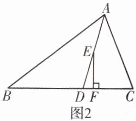 (2)如图 2,点 E 在 AD 上,EF⊥BC 于 F,猜想∠DEF 与∠B,∠C 的数量关系,并证明你的结论.