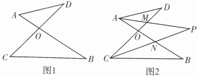 10. 如图,已知线段 AB,CD 相交于点 O,连接 AD,CB,我们把形如图 1 的图形称为“8 字形”. 试解答下列问题: