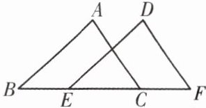 2. 如图,$\triangle ABC\cong\triangle DEF$,$A与D$,$B与E$分别是对应顶点,且测得$BC= 5\mathrm{cm}$,$BF= 7\mathrm{cm}$,则$EC$长为(