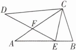 变式训练 如图,$\triangle ABC\cong\triangle DEC$,点$E在AB$上,$AC与DE相交于点F$,$BC= 6$,$BE= 3$。求$\triangle EBC$的周长。
