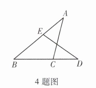4. 如图,已知$\triangle ABC\cong\triangle DBE$,$\angle A= 36^{\circ}$,$\angle B= 40^{\circ}$,求$\angle AED$的度数。