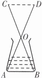 1. 数学兴趣小组要利用所学知识,自己制作一个工具测量一个锥形瓶的内径. 如图,用螺丝钉将两根长度相同的木棒$AD$,$BC的中点O$固定,利用全等三角形知识,测得$CD的长就是锥形瓶内径AB$的长. 其中,判定$\triangle AOB和\triangle DOC$全等的方法是(