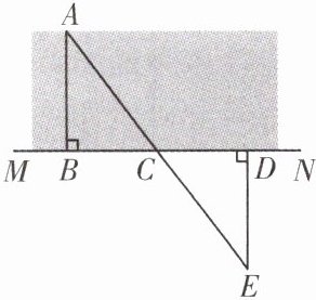 练习 在数学综合实践活动课上,张老师给了各活动小组大直角三角尺一个、皮尺一条,测量如图所示小河的宽度(A 为河岸边的一棵柳树).小颖是这样做的:①在 A 点的对岸作直线 MN;②用三角尺作 AB⊥MN,垂足为 B;③在直线 MN 上另取两点 C,D,使 BC = CD;④过点 D 作 DE⊥MN 交 AC 的延长线于点 E,由三角形全等可知 DE 的长度等于河宽 AB.