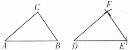 长为半径作弧,两弧交于点 $ D $;③连接 $ DE $,$ DF $,$ \triangle DEF $ 即为所求(依据: