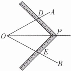 2. 工人师傅经常利用角尺平分一个任意角. 如图,$ \angle AOB $ 是一个任意角,在边 $ OA $,$ OB $ 上分别取 $ OD = OE $,移动角尺,使角尺两边相同的刻度分别与 $ D $,$ E $ 重合,这时过角尺顶点 $ P $ 的射线 $ OP $ 就是 $ \angle AOB $ 的平分线. 你认为工人师傅在此过程中用到的三角形全等的判定方法是(