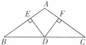 例1 如图,在△ABC中,D是BC的中点,DE⊥AB于点E,DF⊥AC于点F,且BE = CF. 求证:∠B = ∠C.