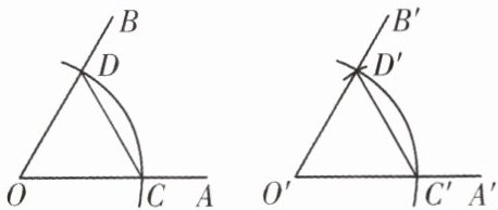 3. (2024·江苏南京·阶段练习)请仔细观察用尺规作一个角 $ \angle A ^ { \prime } O ^ { \prime } B ^ { \prime } $ 等于已知角 $ \angle AOB $ 的示意图,我们可以由 $ \triangle COD \cong \triangle C ^ { \prime } O ^ { \prime } D ^ { \prime } $ 得到 $ \angle A ^ { \prime } O ^ { \prime } B ^ { \prime } = \angle AOB $,请你写出 $ \triangle COD \cong \triangle C ^ { \prime } O ^ { \prime } D ^ { \prime } $ 的理由