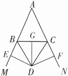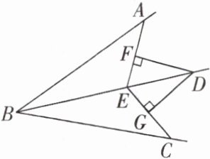 ∴DG=DF(角的平分线上的点到角的两边的距离相等)。