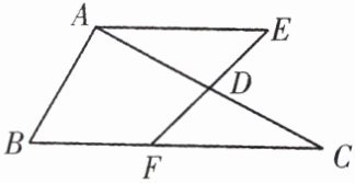8. 如图,点 $ D $ 是 $ \triangle ABC $ 的边 $ AC $ 的中点,且 $ AE // BC $,$ BC = 9 $,$ AE = 5 $,连接 $ ED $ 并延长交 $ BC $ 于 $ F $。求 $ BF $ 的长。