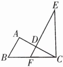 9. 如图,$ \angle BCE = 90^{\circ} $,$ \angle BAC = 90^{\circ} $,$ EF // AB $,交 $ AC $ 于点 $ D $,且 $ BC = EC $。