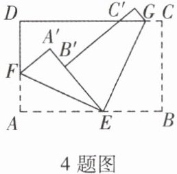 4. 将长方形纸片 $ ABCD $ 按如图所示的方式折叠,$ EF $,$ EG $ 为折痕,折叠后点 $ A' $,$ B' $,$ E $ 在同一直线上,则 $ \angle FEG $ 的度数为(