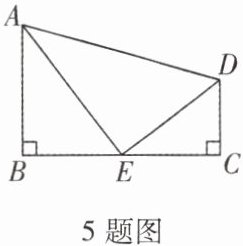 5. 如图,$ \angle B = \angle C = 90^{\circ} $,$ AE $ 平分 $ \angle BAD $,$ DE $ 平分 $ \angle ADC $,若 $ S_{\triangle CDE} : S_{\triangle ABE} = 2 : 3 $,则 $ S_{\triangle ADE} : S_{\triangle DCE} = $