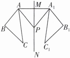 2. 如图,△ABC与$△A_1B_1C_1$关于直线MN对称,P为MN上任一点。下列结论中错误的是(