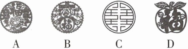 1. 我国的传统节日“春节”被成功列入人类非物质文化遗产代表作名录。在春节期间贴窗花是一种历史悠久的习俗。下面几幅漂亮的窗花剪纸图案中,可以看作是轴对称图形的是(