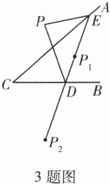3. 如图,$ P $ 是 $ \angle ACB $ 外一点,$ D $,$ E $ 分别是 $ \angle ACB $ 两边上的点,点 $ P $ 关于 $ CA $ 的对称点 $ P_1 $ 恰好落在线段 $ ED $ 上,点 $ P $ 关于 $ CB $ 的对称点 $ P_2 $ 落在 $ ED $ 的延长线上。若 $ PE = 24 $,$ PD = 32 $,$ ED = 37 $,则线段 $ P_1P_2 $ 的长为
