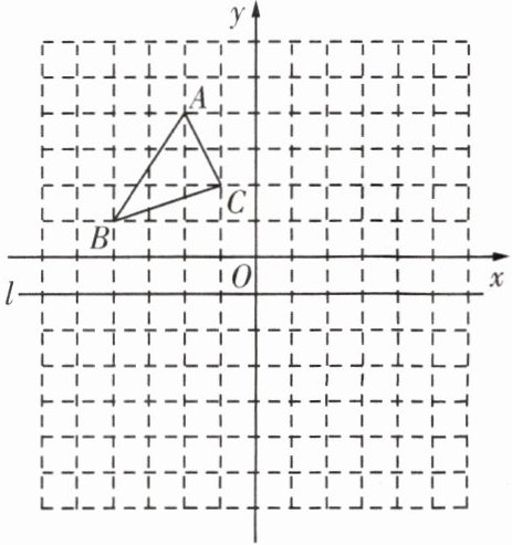 6. 如图,在直角坐标系中,$\triangle ABC的顶点坐标分别为A(-2,4)$,$B(-4,1)$,$C(-1,2)$,直线$l与x轴平行且经过点(0,-1)$.