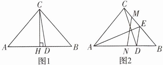(2) 如图 2,若点 $ E $ 在 $ BC $ 边上且 $ DE = DB $,连接 $ AE $. 点 $ M $ 为线段 $ CE $ 的中点,过点 $ M $ 作 $ MN // DE $ 交 $ AB $ 于点 $ N $. 求证: $ CD = BN + DN $.