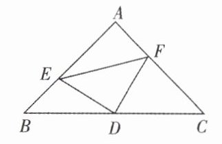 例2 如图,在$\triangle ABC$中,$∠A= 90^{\circ },AB= AC$,$D为BC$的中点,$E,F分别是AB,AC$上的点,且$BE= AF$.试判断$\triangle DEF$的形状.