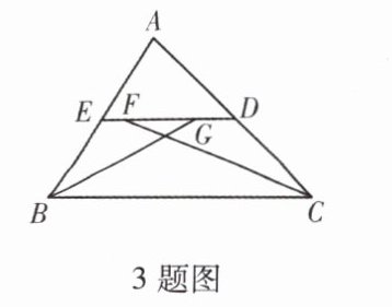 3. 如图,在$\triangle ABC$中,$ED// BC$,$∠ABC和∠ACB的平分线分别交ED于点G,F$,若$FG= 4$,$ED= 8$,则$EB+DC= $