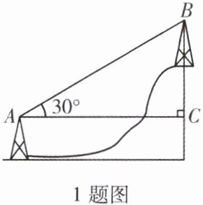 1.(数学与生活)如图是某公园一段索道的示意图,已知 $A$,$B$ 分别为索道的起点和终点,且 $A$,$B$ 两点间的距离 $AB$ 为 $40$ 米,$\angle BAC = 30^{\circ}$,则缆车从 $A$ 点到 $B$ 点的高程($BC$ 的长)为(