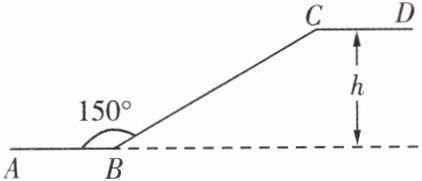 3. 如图是某商场一楼与二楼之间的手扶电梯示意图。其中 $AB$、$CD$ 分别表示一楼、二楼地面的水平线,$\angle ABC = 150^{\circ}$,$BC$ 的长是 $10\ m$,则乘电梯从点 $B$ 到点 $C$ 上升的高度 $h$ 是