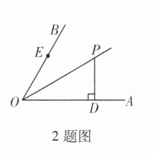 2. 如图,$OP$ 平分 $\angle AOB$,$\angle AOB = 60^{\circ}$,$PD\perp OA$ 于点 $D$,$E$ 是射线 $OB$ 上的一个动点,若 $OP = 6$,则 $PE$ 的最小值为(