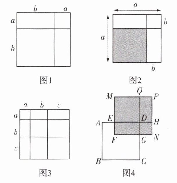 (2)利用图3解决问题:若$a + b + c = 10$,$ab + ac + bc = 32$,则$a^{2} + b^{2} + c^{2} = $